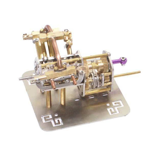 The Mini V4 steam engine is with 4 cylinder. It is a heat engine that performs mechanical work using steam as its working fluid. The steam engine uses the force produced by steam pressure to push a piston back and forth inside a cylinder.