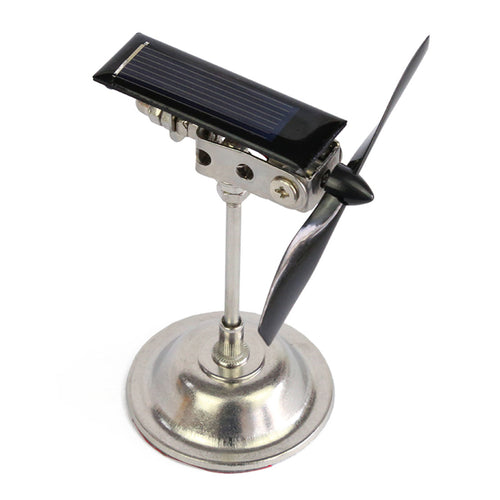 Solar powered windmill motor model, and the base come with car glue, which can be used for car-mounted. The inside is clearly visible, which makes it easy to observe the principle. It is not affected by temperature changes and can be rotated throughout the year. Polysilicon solar panels. Made of metal, beautiful and durable.